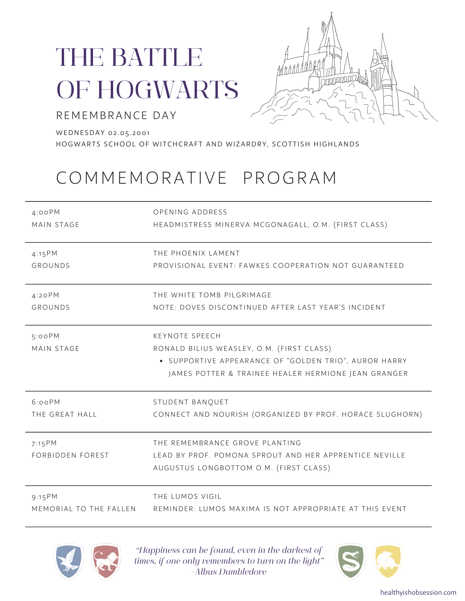 Battle of Hogwarts Remembrance Day: Commemorative Program