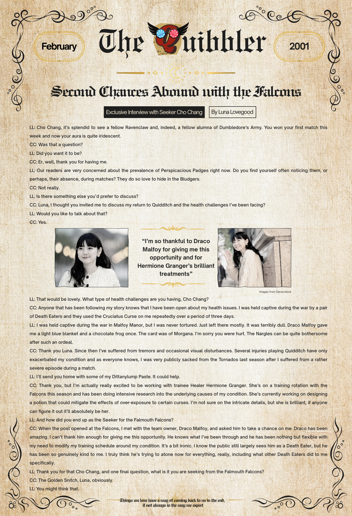 The Quibbler: Exclusive Interview by Luna Lovegood