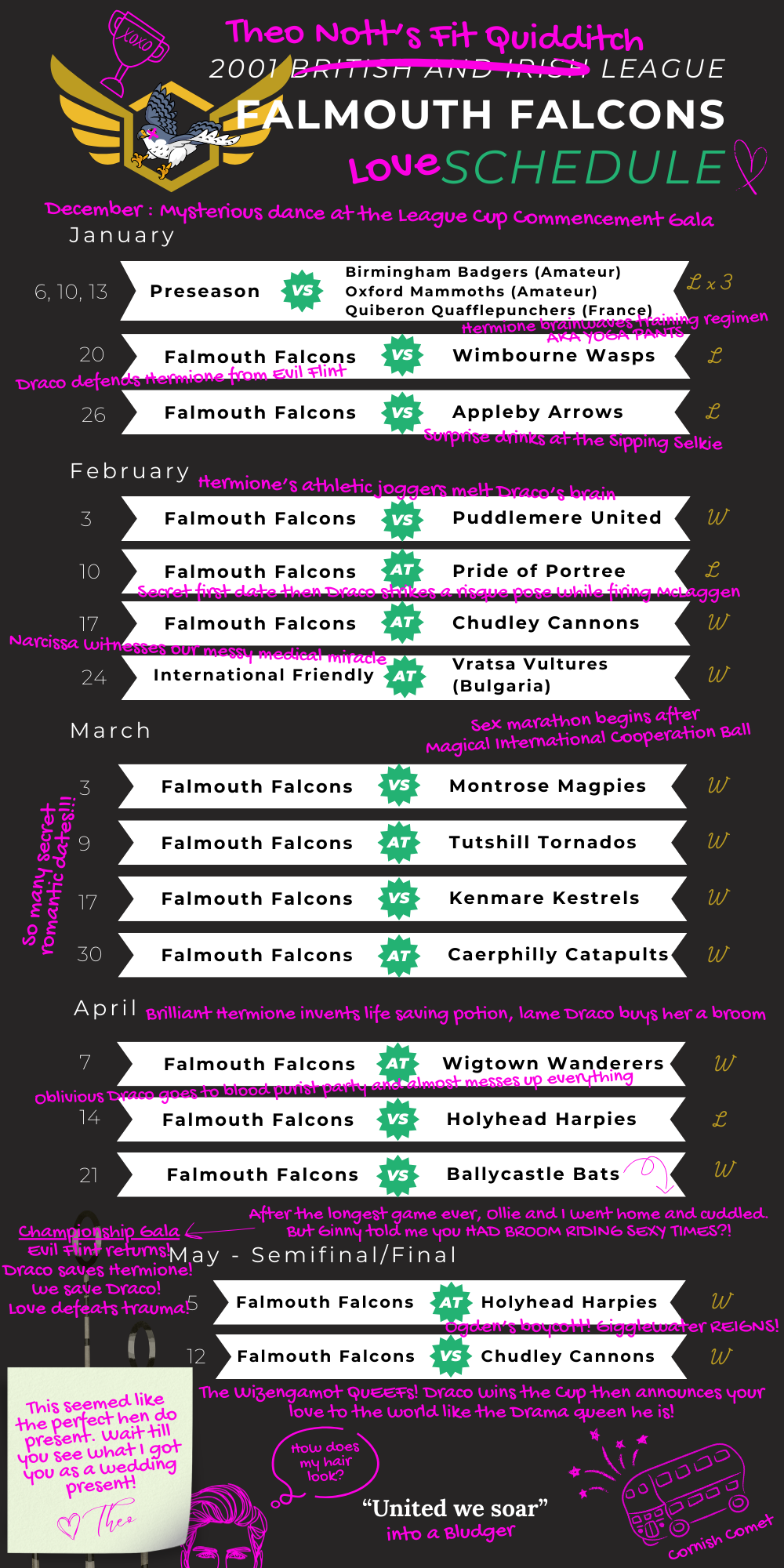 2001 Falmouth Falcons' Schedule: Theo's version